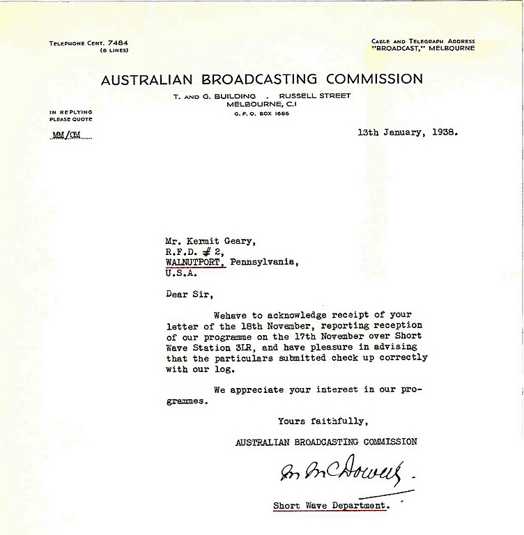 Short Wave Station VK3LR - 1937