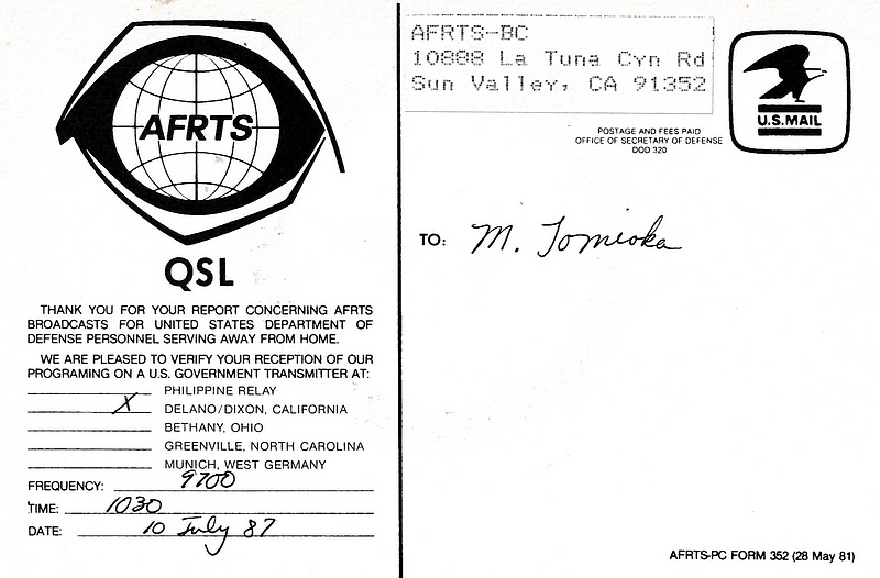 AFRTS - Dixon California, Bethany, Ohio - 1979, AFRTS - Delano/Dixon California 1987