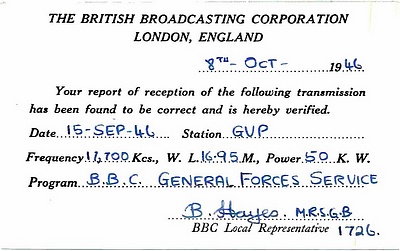 BBC Light Programme Service - Woofferton -