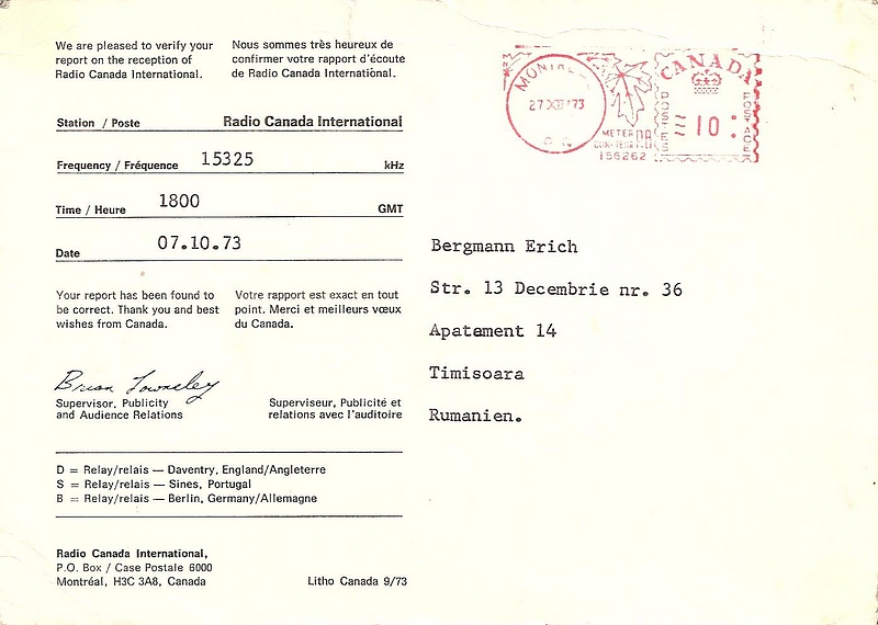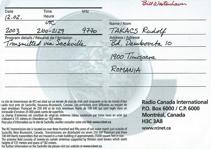 QSL Contributed by Rudolf Takacs (Romania)