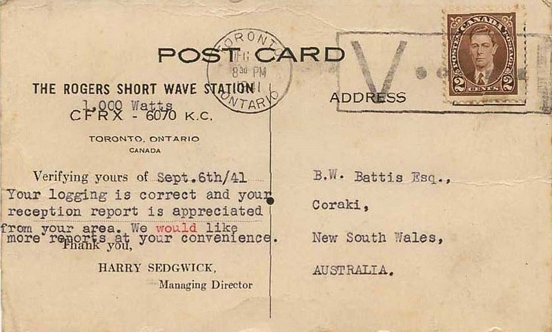 ![]() ![]() QSL Courtesy of "Radio Heritage Foundation, Bruce Battis Collection" (Australia)