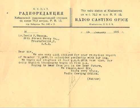 Radio Casting Office, Station RV15 - Khabarovsk - Siberia - 1930