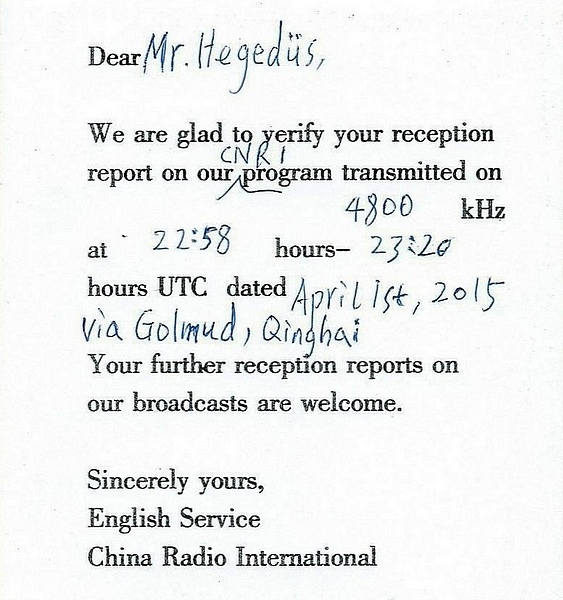 China National Radio 1 - Golmud Qinghai 2015(2)