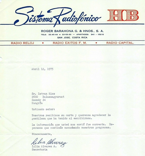 QSL Contributed by Istvan Kiss (Hungary) Radio Reloj - 1979