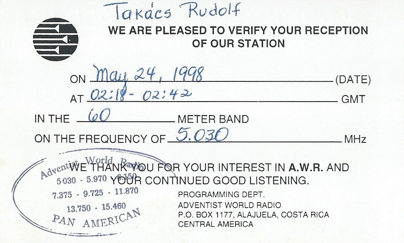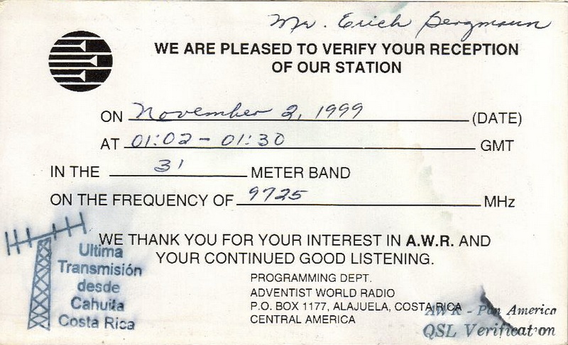 Adventist World Radio - Cahuita - 1997(2), 1998, 1999(2)