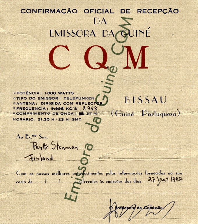 Emissora de Guinea CQM - 1962