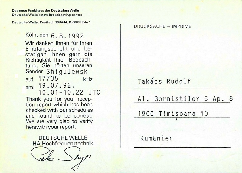 Deutsche Welle via Shigulewsk, Tatarstan - 1992