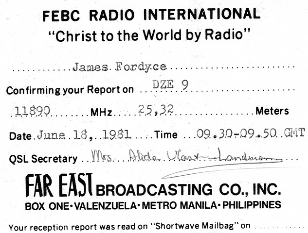 QSL Contributed by Bill McDavitt from the James Fordyce Collection (USA)