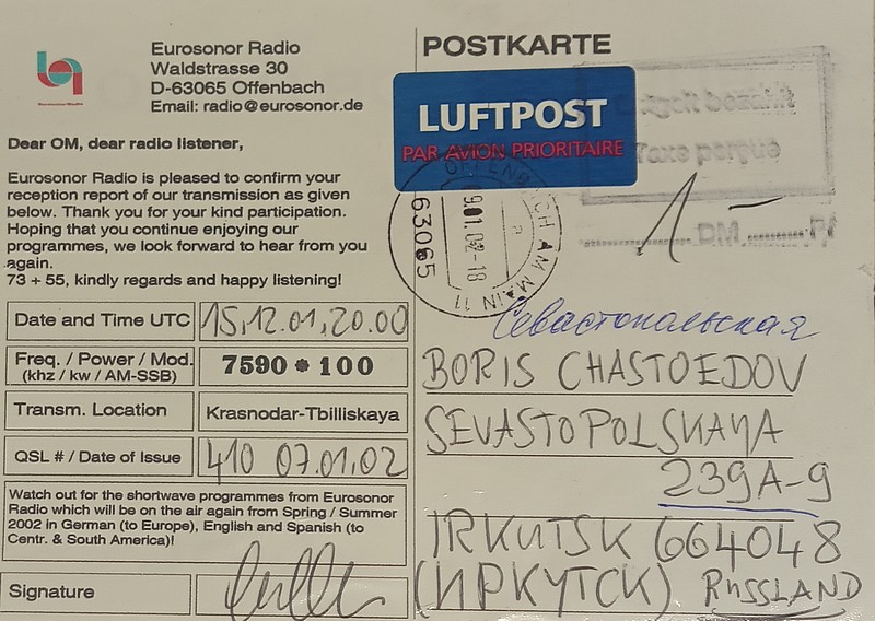 QSL Contributed by Boris Chastoedov (Russia)