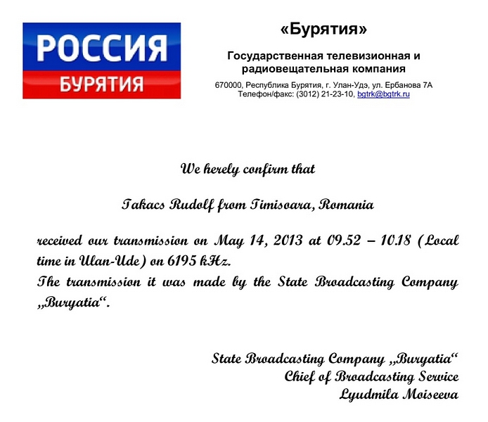 QSL Contributed by Rudolf Takacs (Romania)
