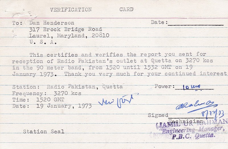 QSL Contributed by Dan Henderson (USA)