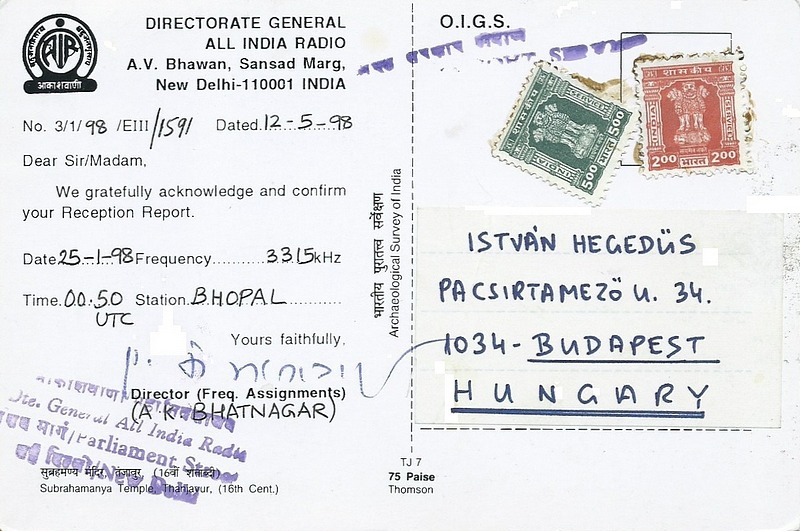 All India Radio - Bhopal - 1984, 1998