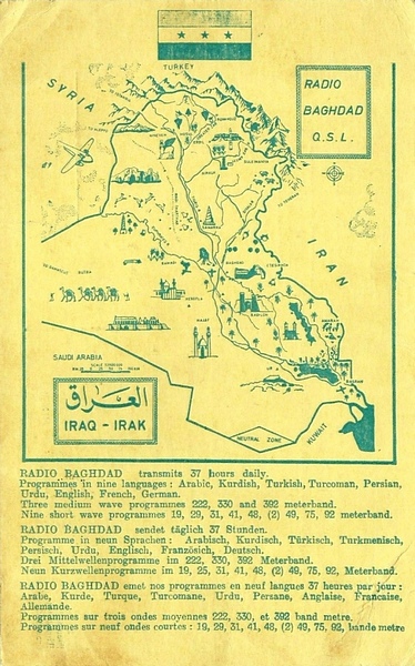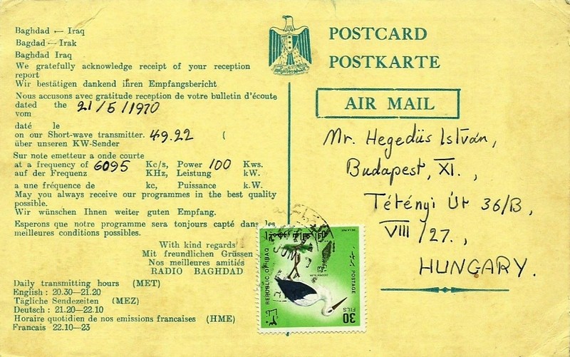 Radio Baghdad - 1970, 1973, 1976, 1977, 1978, 1985, Sticker ![]() ![]() QSL Contributed by Istvan Hegedus (Hungary)