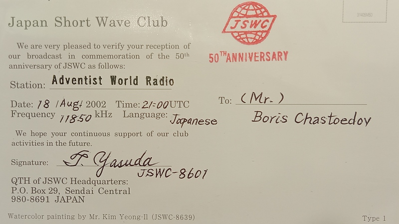 JSWC - Japan Short Wave Club 50th Anniversary via AWR