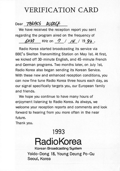 KBS Radio Korea - Skelton - 1993, 1997, 2008
