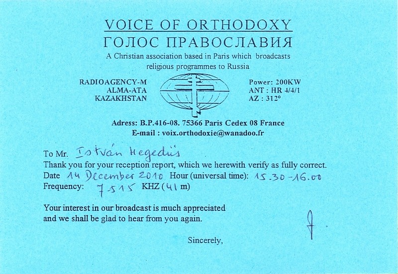 QSL and Audio Contributed by Istvan Hegedus (Hungary)