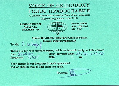 Voice of Orthodoxy - Alma-Ata, 204, 2010, Station ID and Program Audio