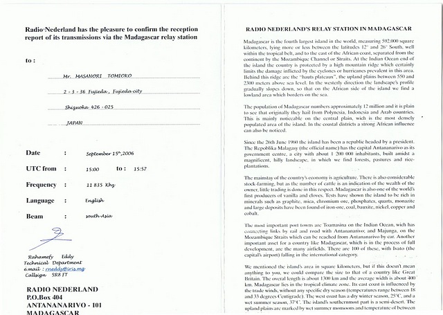 QSL Contributed by Masanori Tomioko (Japan)