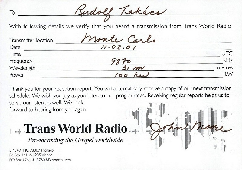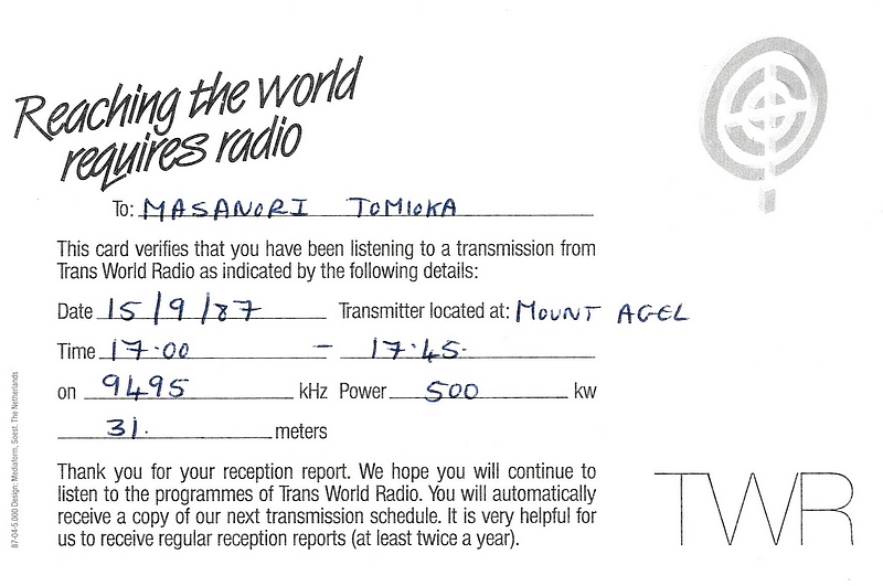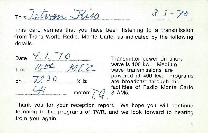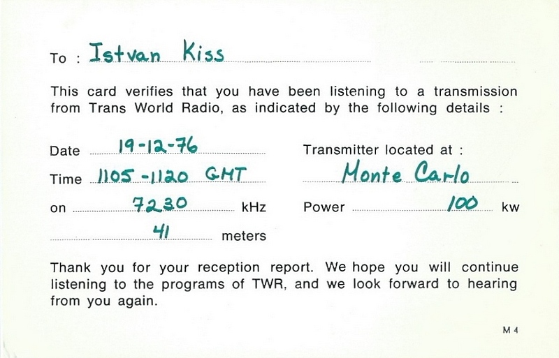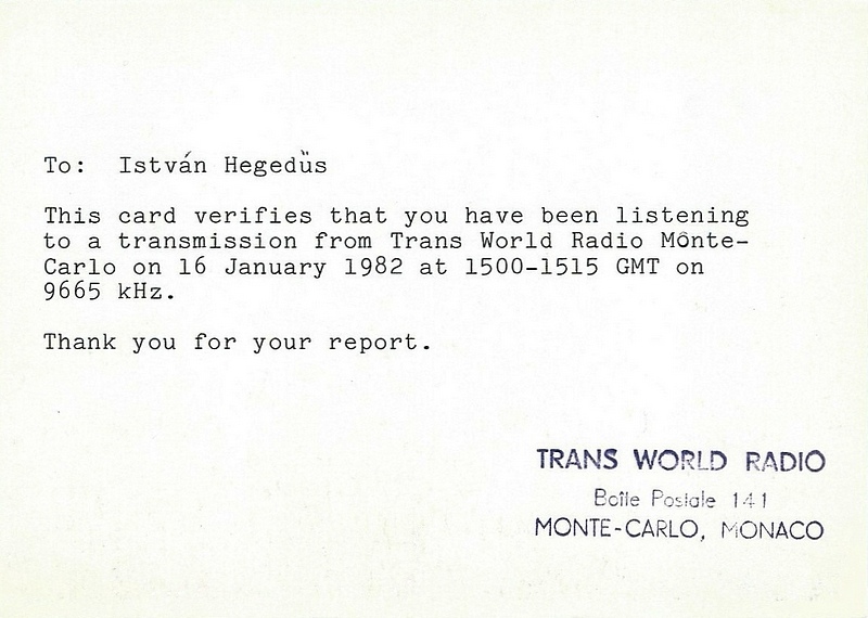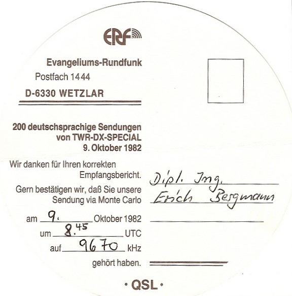 TWR via Monaco - 1982 ![]() ![]() QSL Contributed by Erich Bergmann (Germany)