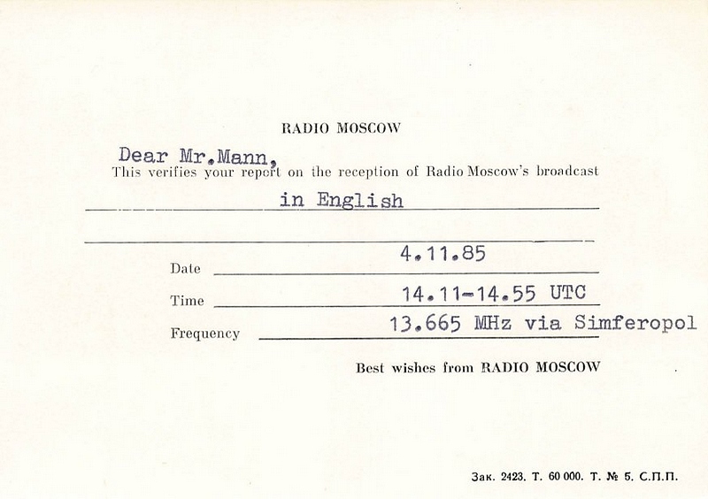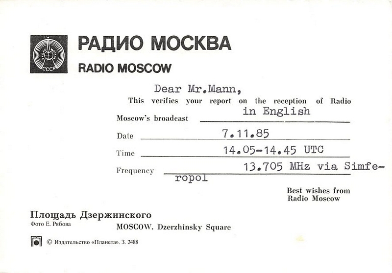 Radio Moscow via Simferopol - 1982, 1985(2), 1990, 1992