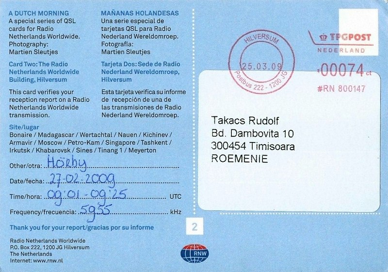 QSL Contributed by Rudolf Takacs (Romania)