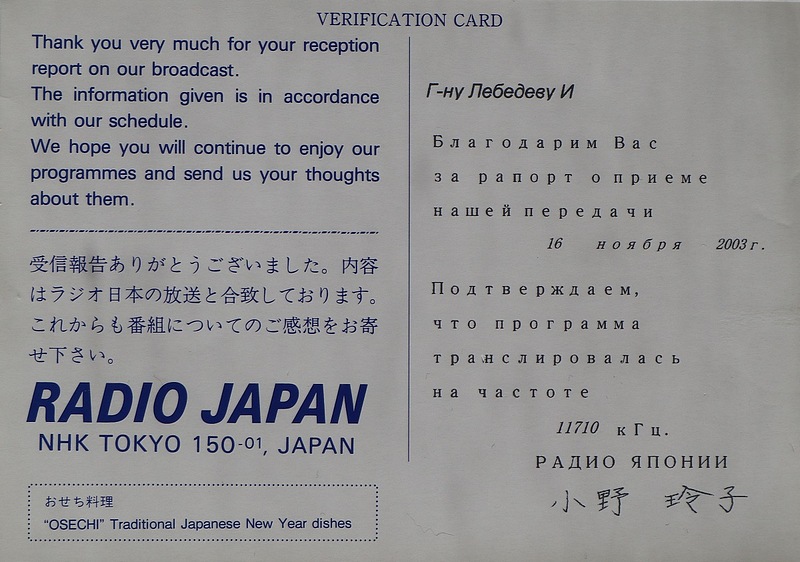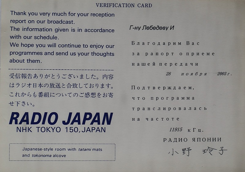 Radio Japan Russian Service via Woofferton UK, 2002, 2003, Station IDs Audio