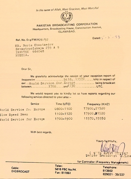 Pakistan Broadcasting Corporation 1954, 1969, 1975, 1977, 1978, 1990, 1992, 1994, 1999