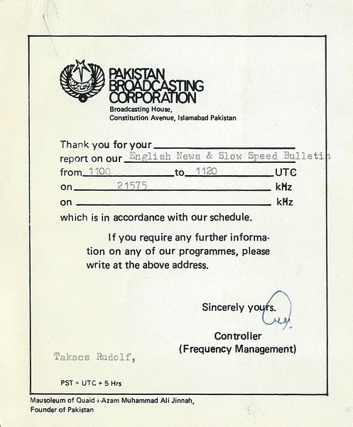 ![]() QSL Contributed by Rudolf Takacs (Romania)