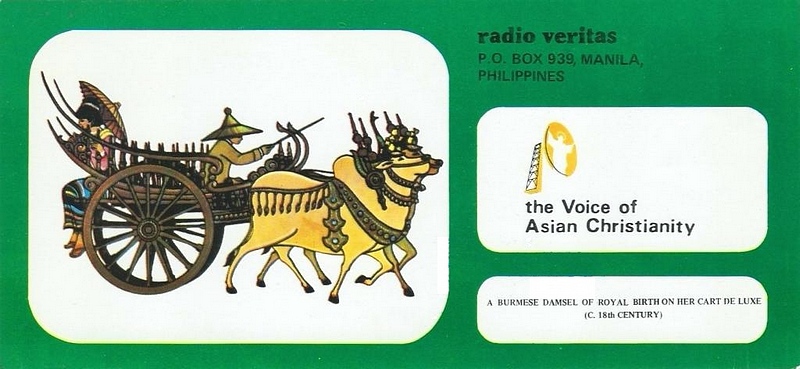 Radio Veritas 1976, 1977(2), 1978, 1985, 1988, 1989(2), 2001, Pennants, Stickers, Prayer Card ![]() ![]() QSL Contributed by Masanori Tomioka (Japan)