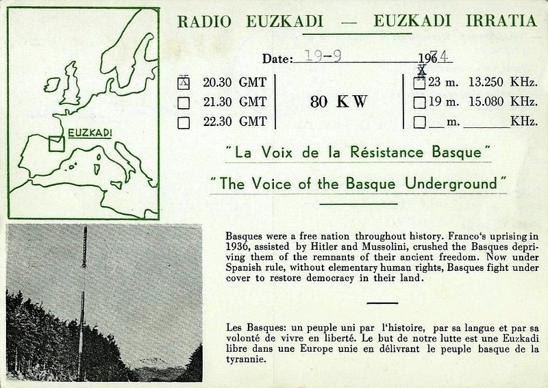 Radio Euzkadi via Santa Lucia - 1974, Historic Radio Euzkadi Link