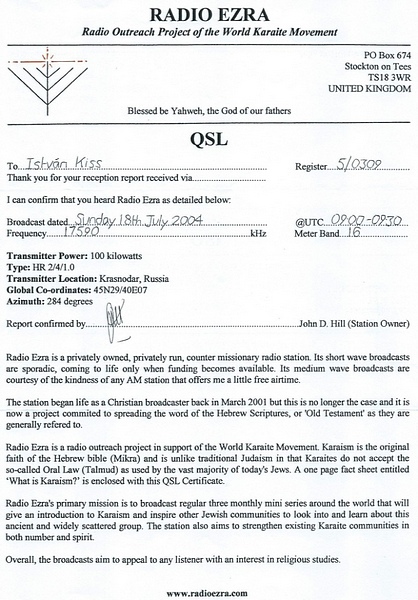 QSL Contributed by Istvan Kiss (Hungary)