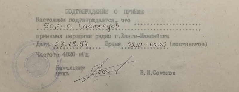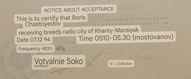 QSL Contributed by Boris Chastoedov (Russia)