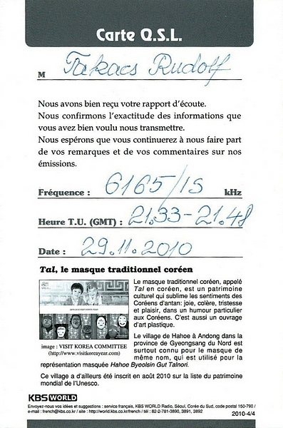 QSL Contributed by Rudolf Takacs (Romania)