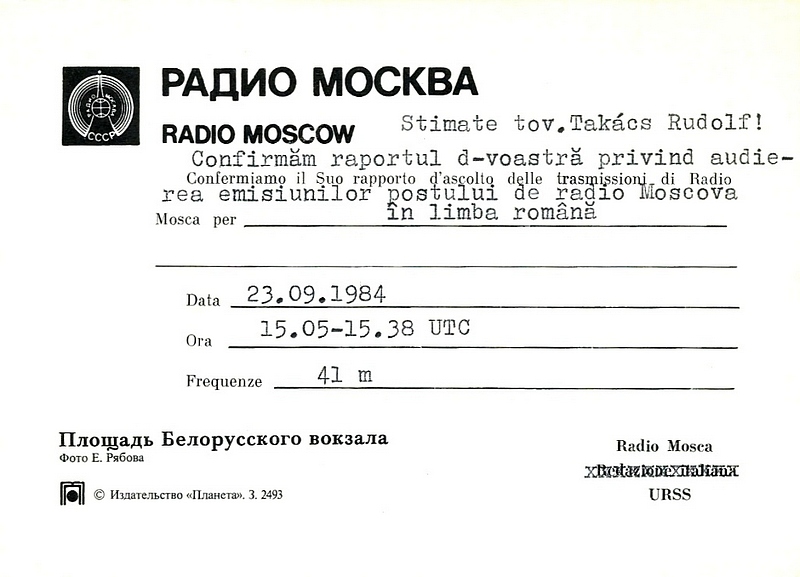 Radio Moscow Romanian Service - 1984, 1985
