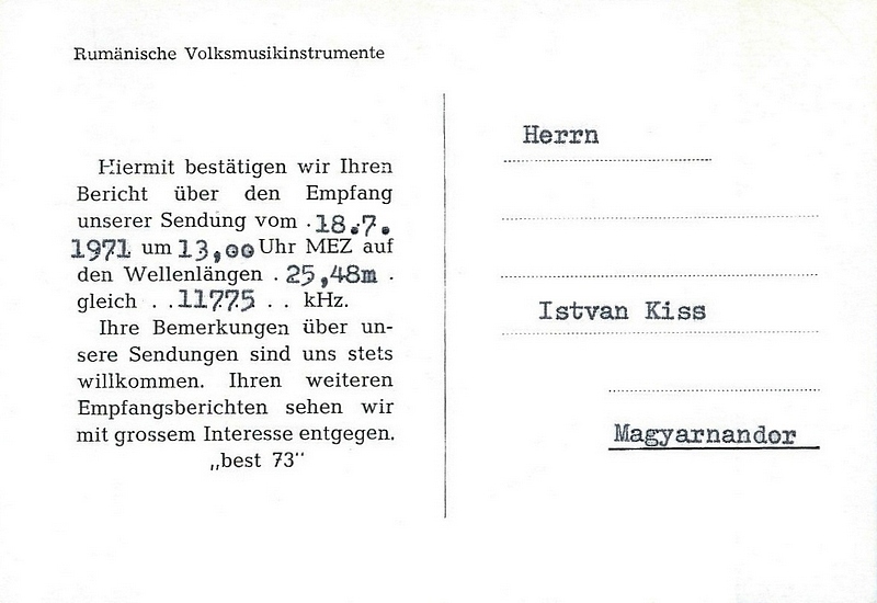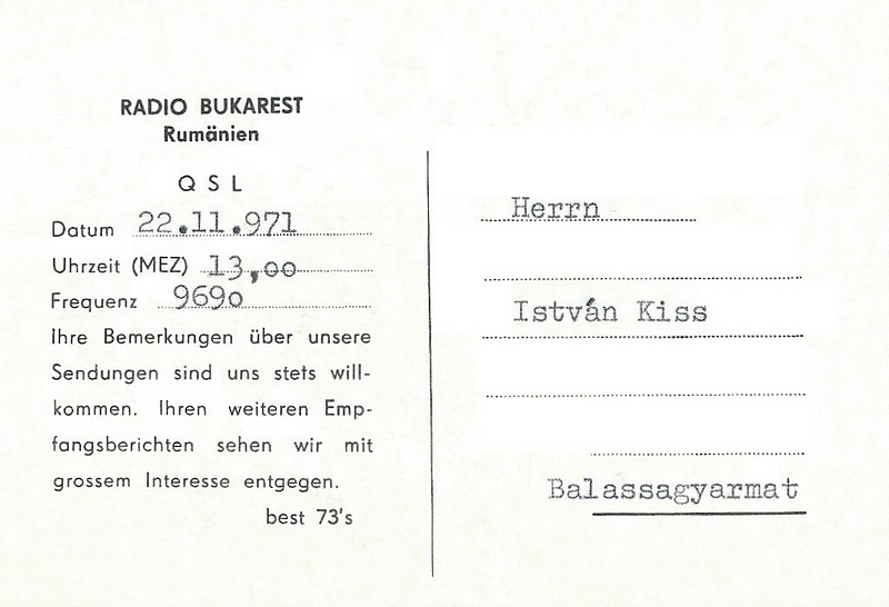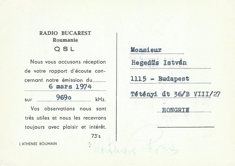 ![]() ![]() QSL Contributed by Istvan Kiss (Hungary) Radio Bucharest - 1971 ![]() ![]() QSL Contributed by Istvan Kiss (Hungary) Radio Bucharest - 1971 ![]() ![]() QSL Contributed by Istvan Kiss (Hungary) Radio Bucharest - 1973 ![]() ![]() QSL Contributed by Istvan Kiss (Hungary) Radio Bucharest - 1974 ![]()