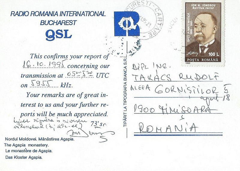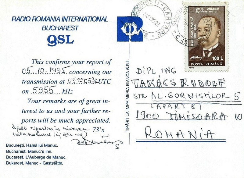 QSL Contributed by Rudolf Takacs (Romania)