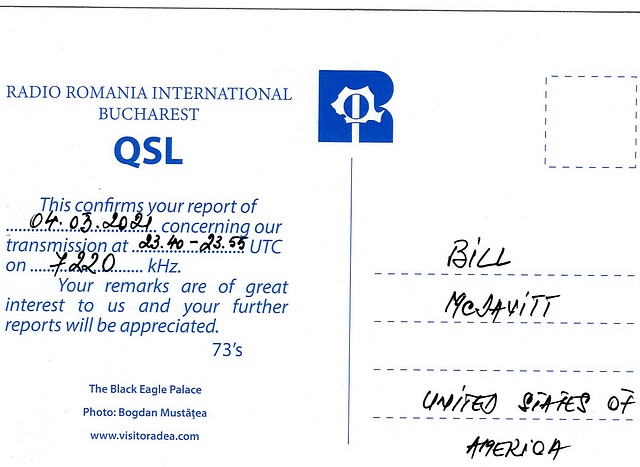 Radio Romania International 2021 ![]() ![]() ![]() QSL and Sticker Contributed by Bill McDavitt (USA)