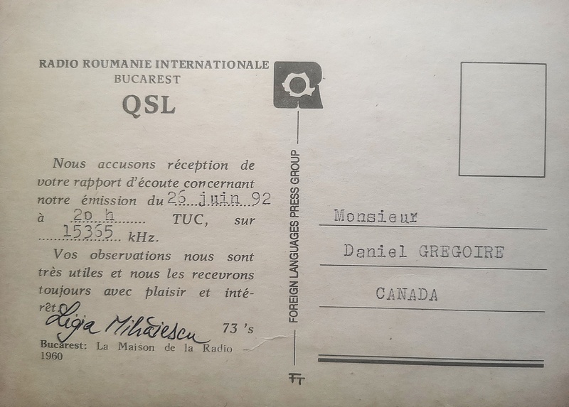 QSL Contributed by Dan Gregoire (Canada)