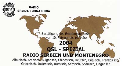 Radio Serbia and Montenegro (German Service) QSL Contributed by Peter Vaegler (Germany)