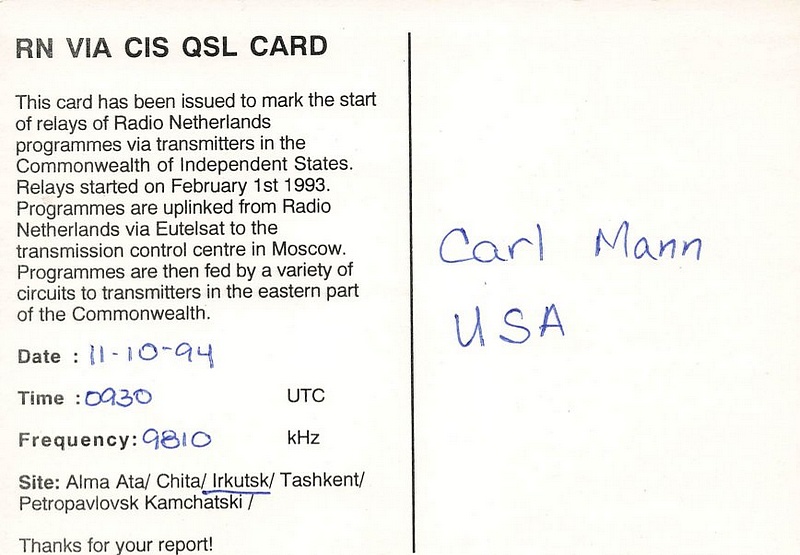 Radio Nederland - Irkutsk - 1994