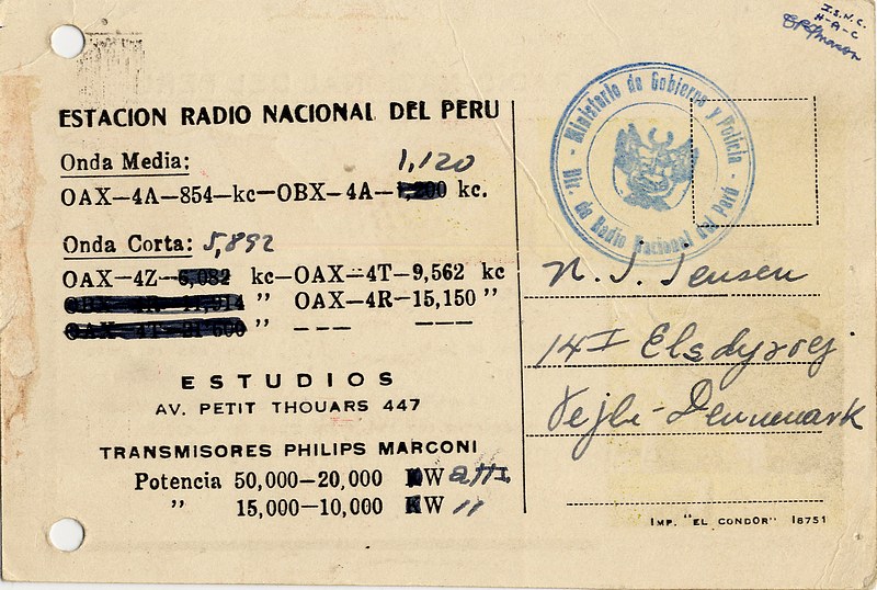 QSL Courtesy of the "Niels J Jensen Collection, Danish Shortwave Club International (DSWCI), Radio Heritage Foundation"