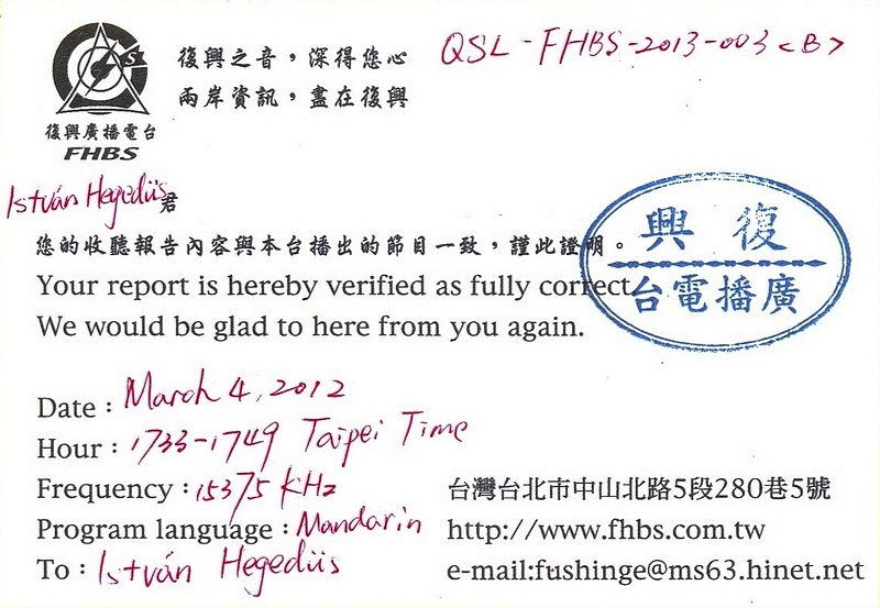 QSL and Photo Contributed by Istvan Hegedus (Hungary)