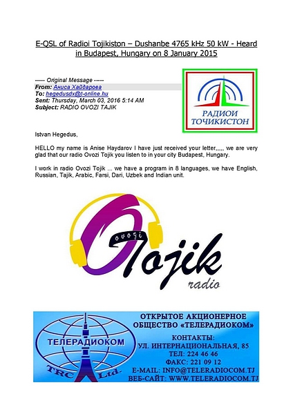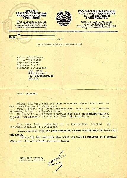 QSL Courtesy of BQO - Broadcast QSLs Online, Paul Gager (Austria)