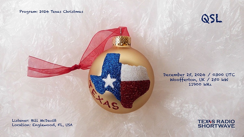 Texas Radio Shortwave - 2024 Christmas Special Broadcast QSL via Woofferton