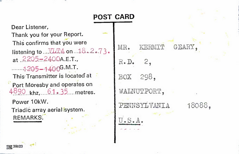 QSL Contributed by Bill McDavitt from the Nilsson Collection (Sweden)