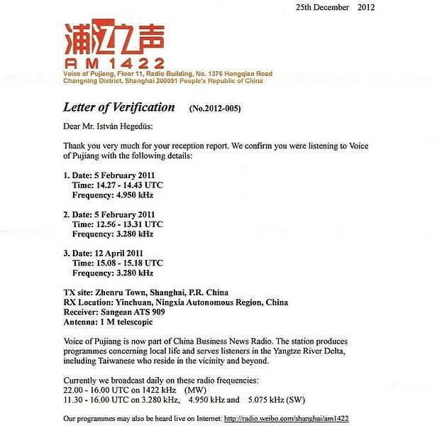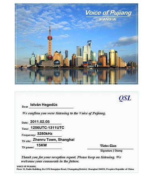 QSL Courtesy of Istvan Hegedus (Hungary)
