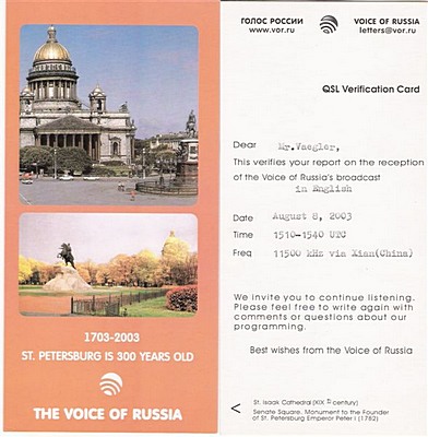 QSL Contributed by Peter Vaegler (Germany)