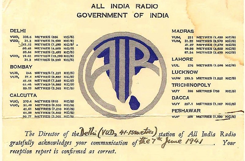 All India Radio - VUD2 - Delhi - 1941