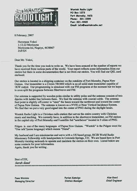 QSL and Letter Contributed by Harumasa Yokoi (Japan)