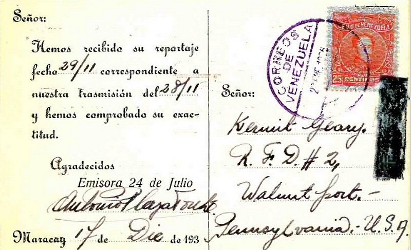 Emisora 24 de Julio - YV12RM - 1936